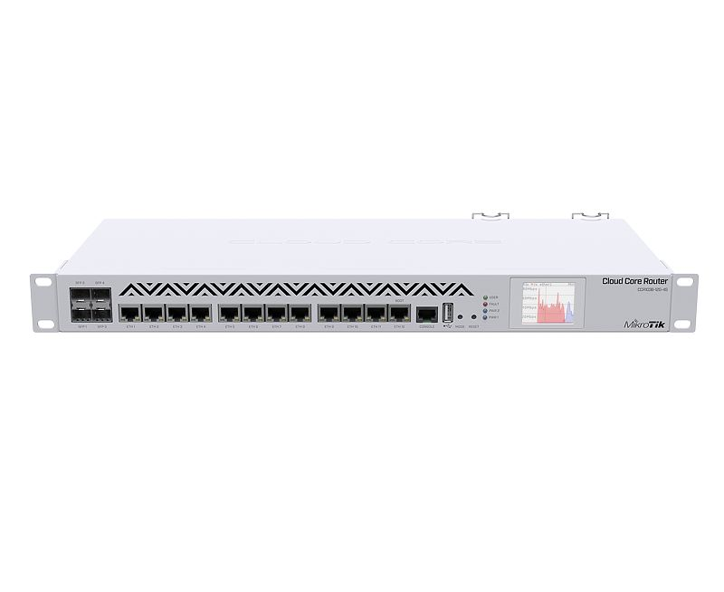 1U для монтажа в стойку, 12x Gigabit Ethernet, 4xSFP клетки, ЖК-дисплей, 36 ядер x 1,2ГГц, 16ГБ ОЗУ, 24 быстрый путь mpps, пропускная способность до 16 Гбит/с, RouterOS L6