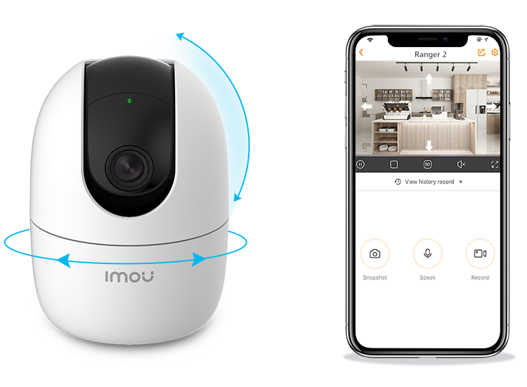 Камера Ranger 2 может демонстрировать панораму в 355° и наклоняться от -5° до 80°, что позволит вам рассмотреть каждый угол комнаты.